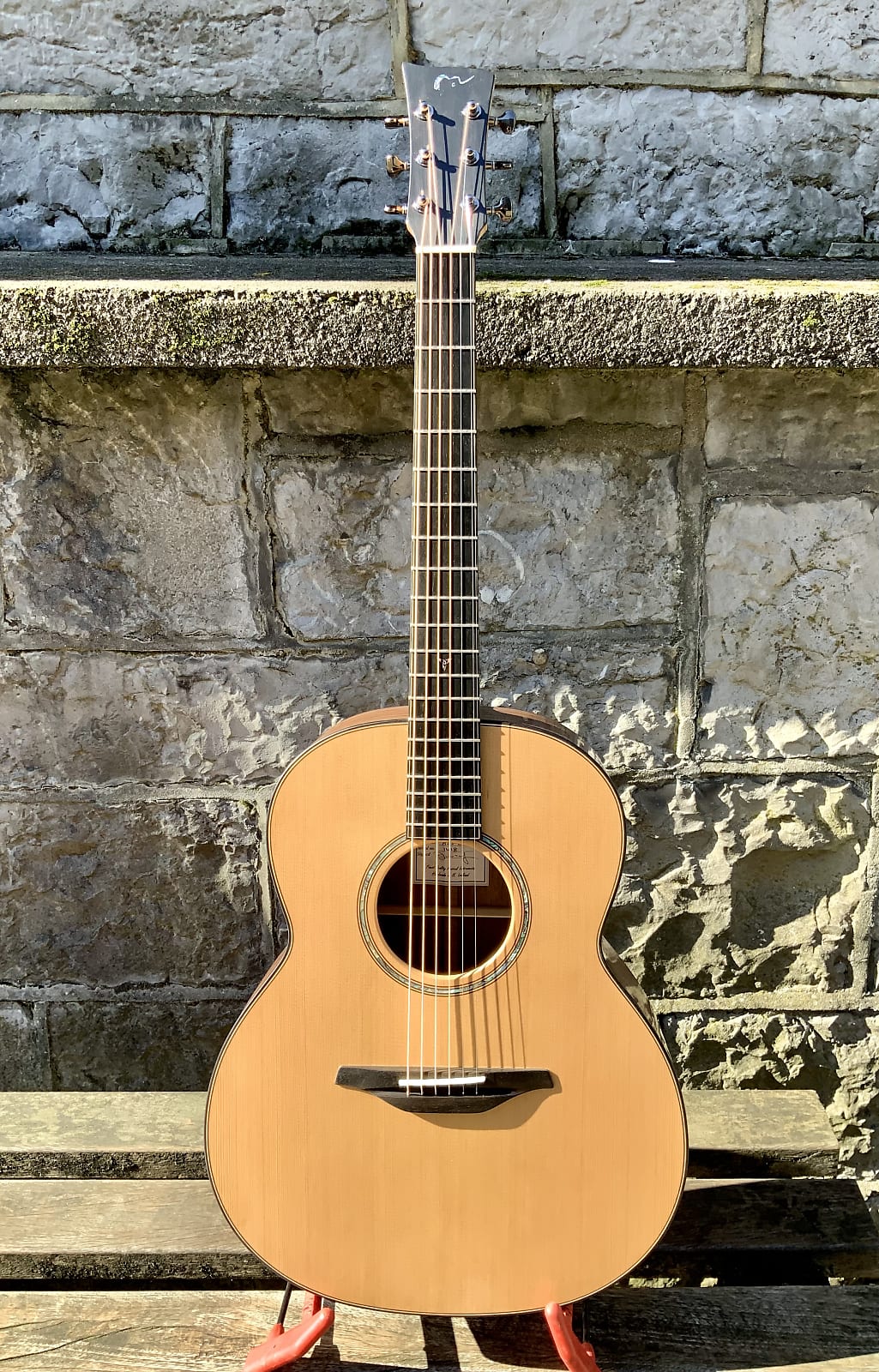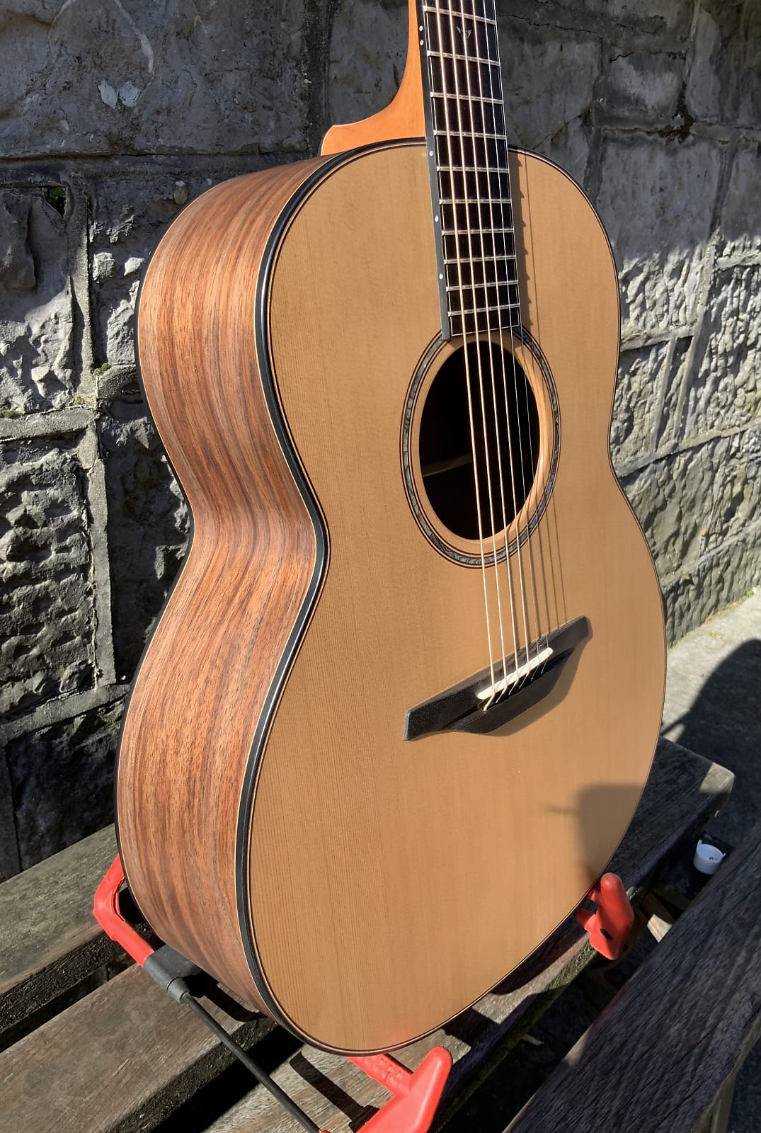 Jumbo McIlroy body with Redwood top , Brazilian lacewood back and sides.