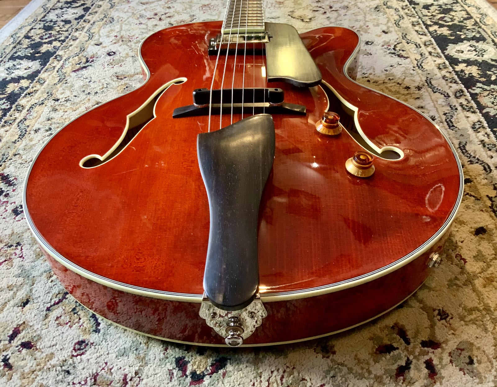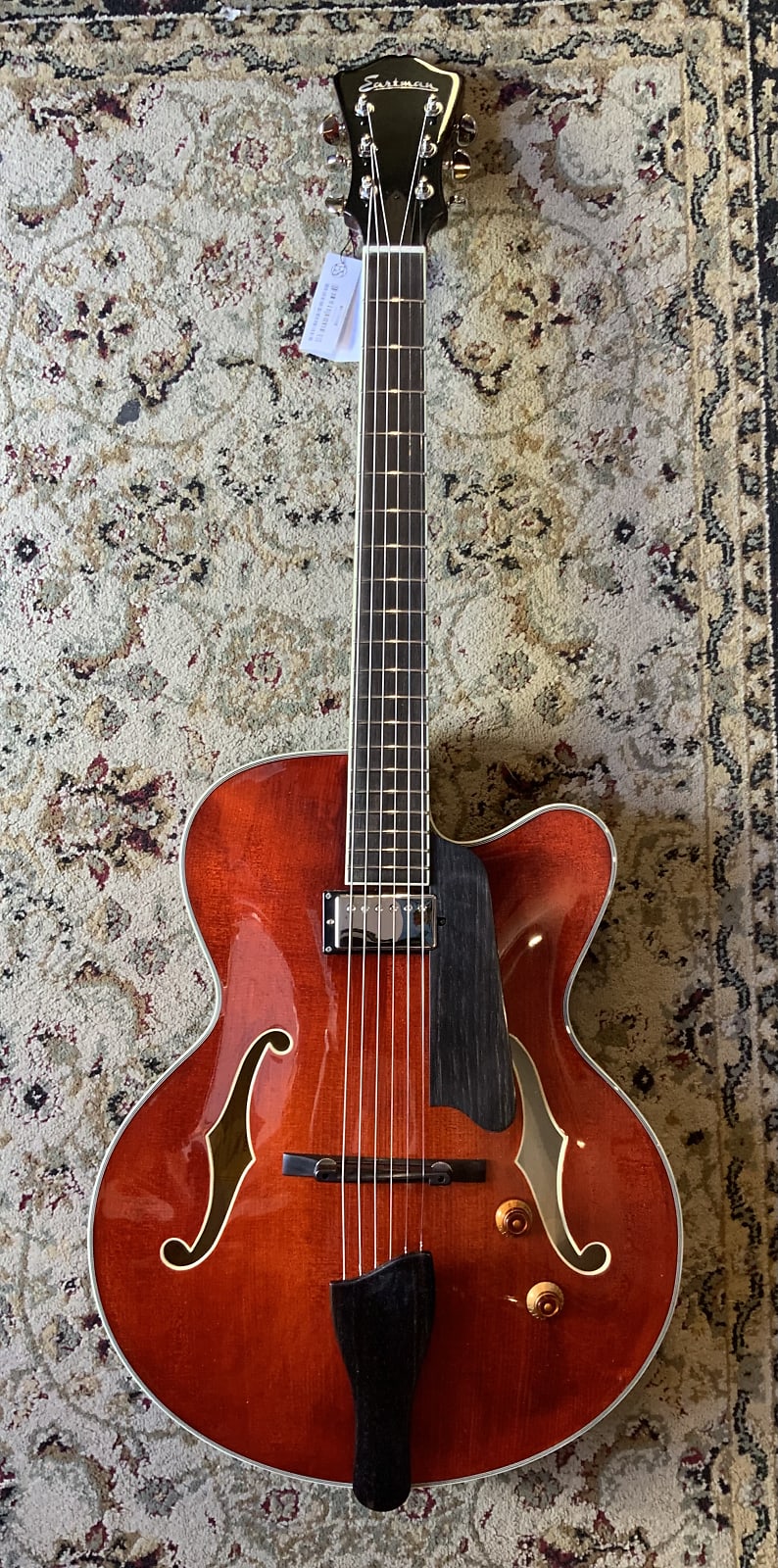 small size high quality thinline with 14 inch bottom bout, includes Eastman deluxe hard case.